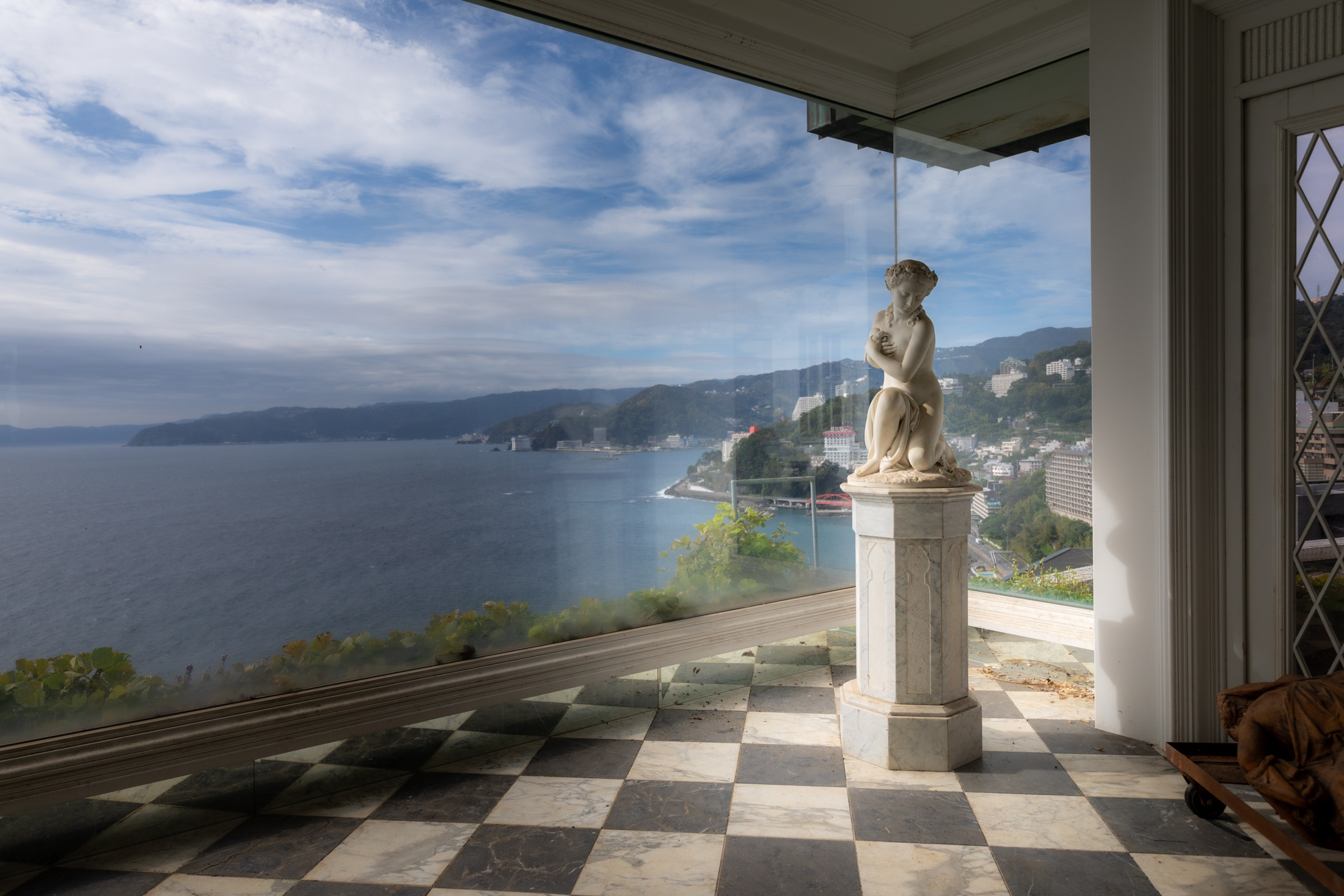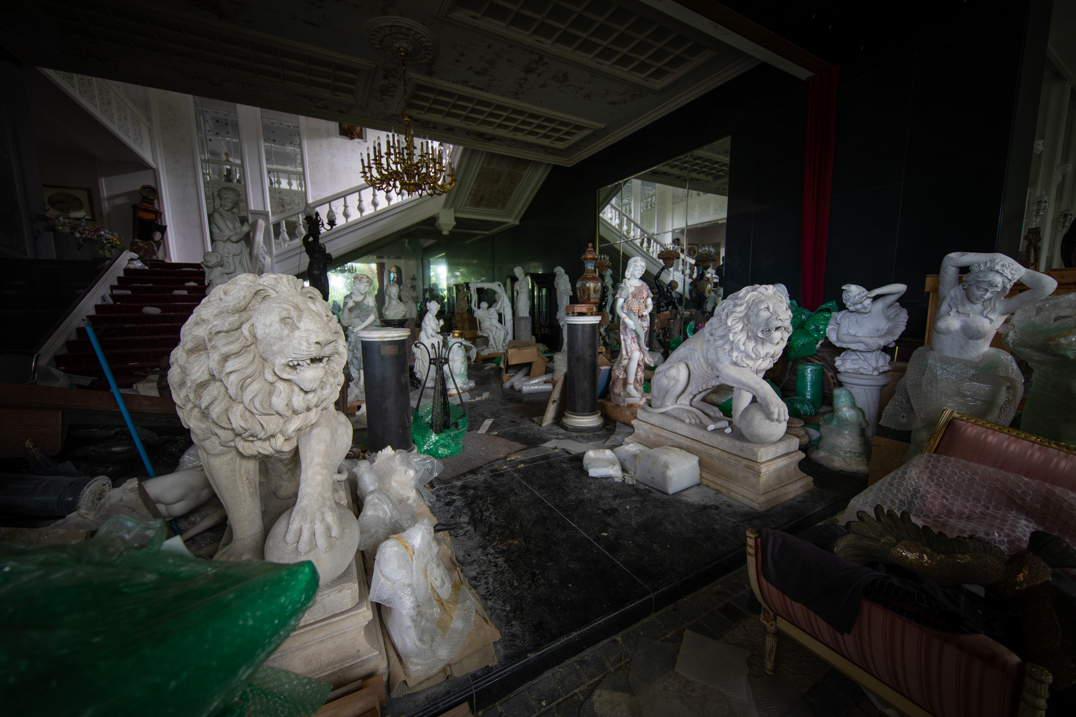 The grandeur of a bygone era lingers in this haunting mansion gallery filled with decaying sculptures.