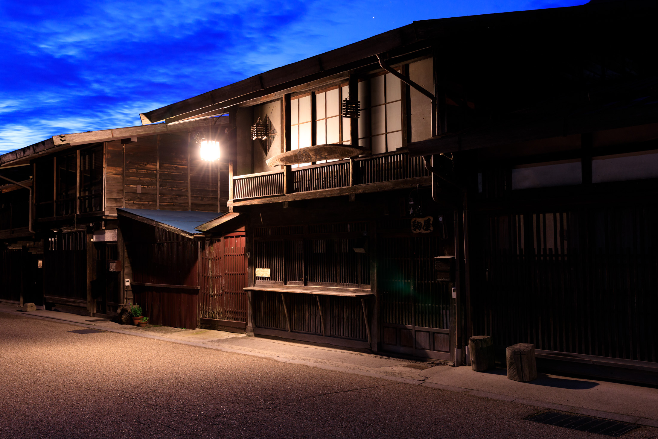 Historic Japanese Wooden Inn at Night
