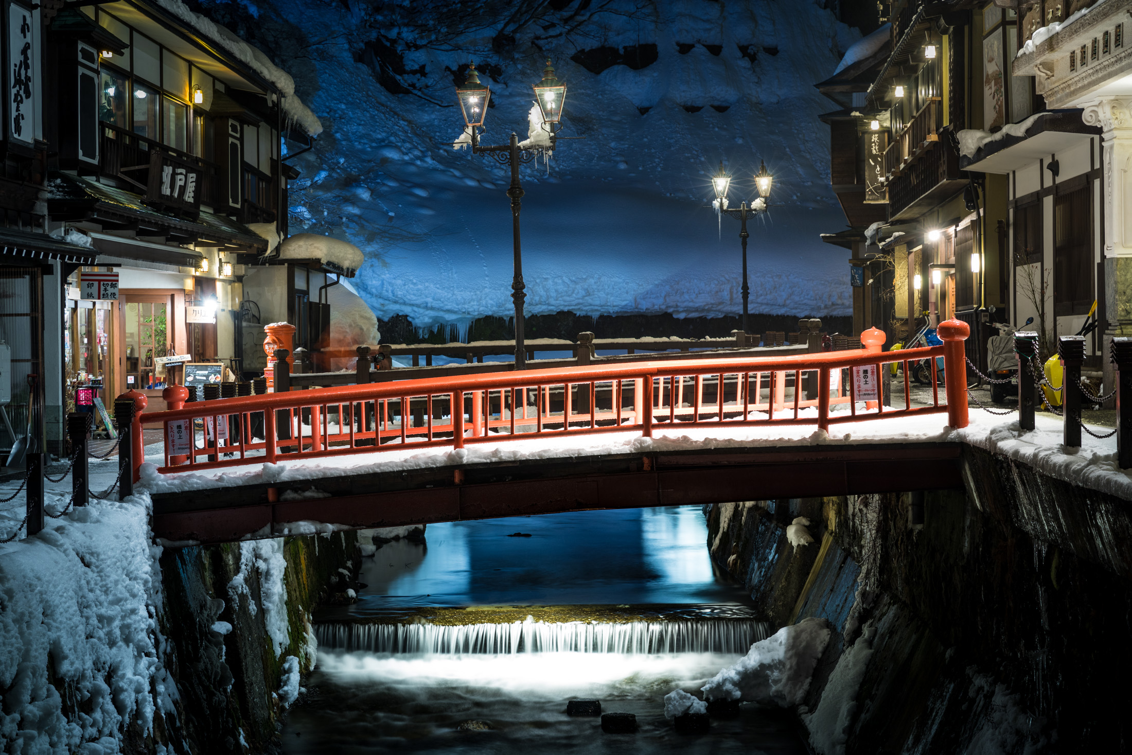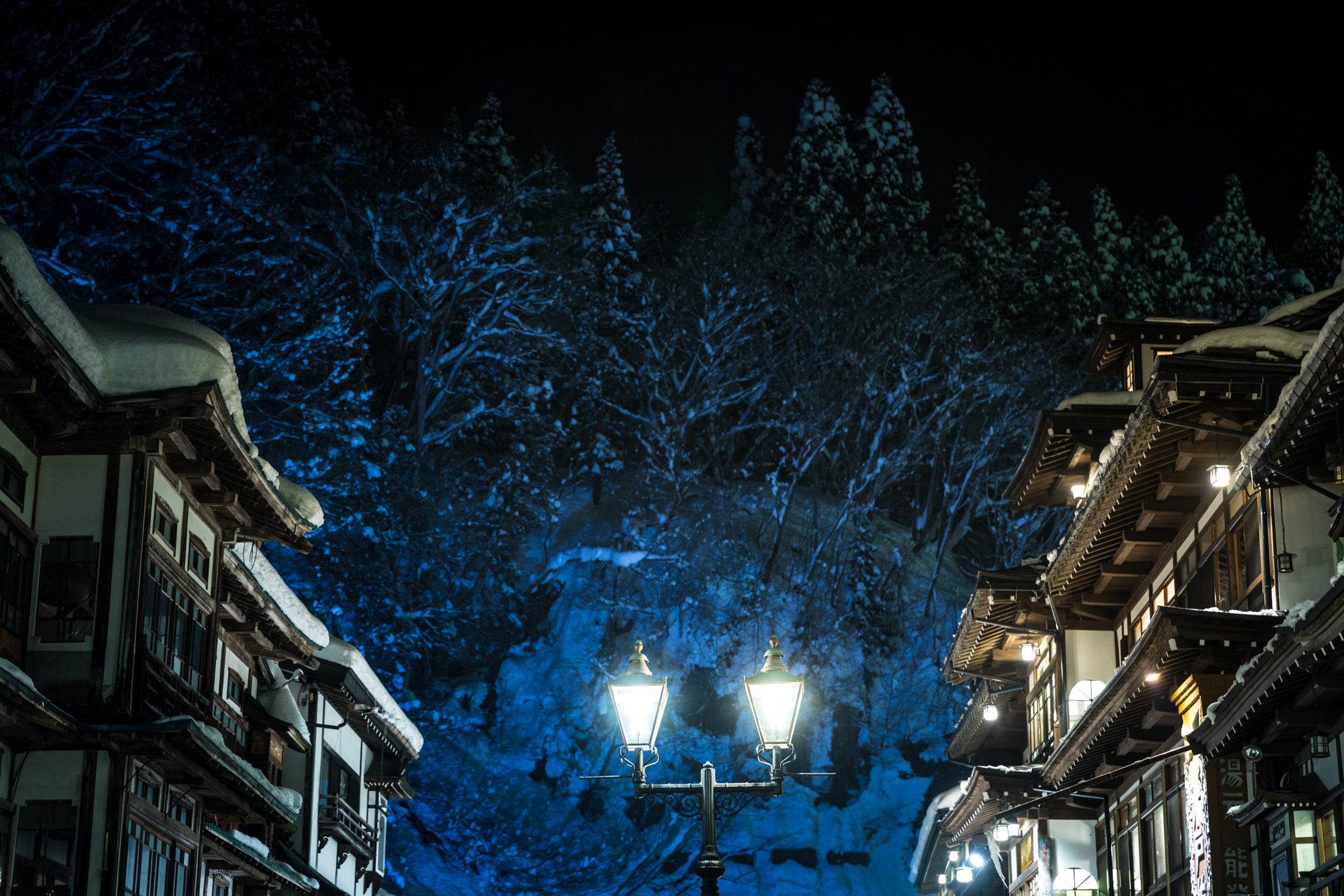 Enchanting Winter Scene at Ginzan Onsen in Japanese Alps