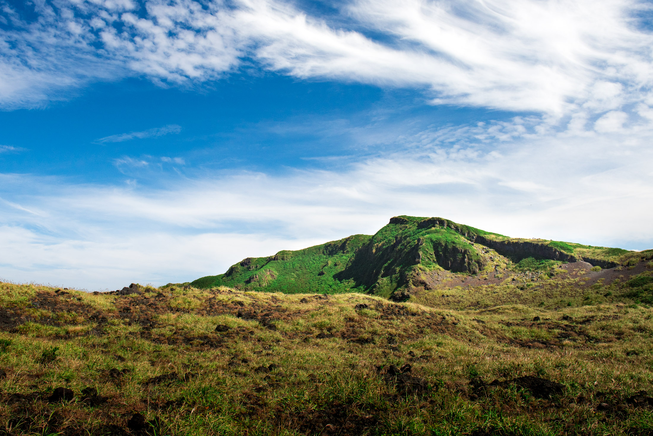Experience the breathtaking volcanic beauty of Oshima Islands rugged peaks and lush meadows.